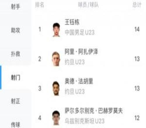 被说太保守王钰栋14脚射门位居U23亚洲杯射门数榜首